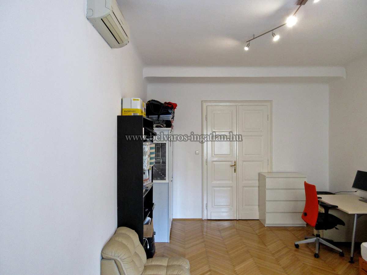 Újlipótváros egyik legpatinásabb épületében eladó egy 158 nm-es, 2. emeleti 4 szoba hallos, 2 fürdőszobás jó állapotú, légkondicionált lakás. A nagypolgári lakást tágas terek jellemzik, rendkívül világos. 3 szoba külön bejáratú, a 4. szoba az egyik szobából nyílik, mindegyik légkondicionált. Két fürdőszobából az egyik zuhanyzós, másik kádas. A nagy méretű konyhából egy kamra nyílik. Nyílászárók cserélve lettek. A ház egyik legnagyobb értéke a saját belső kert, ami parkként működik az ott lakók számára.