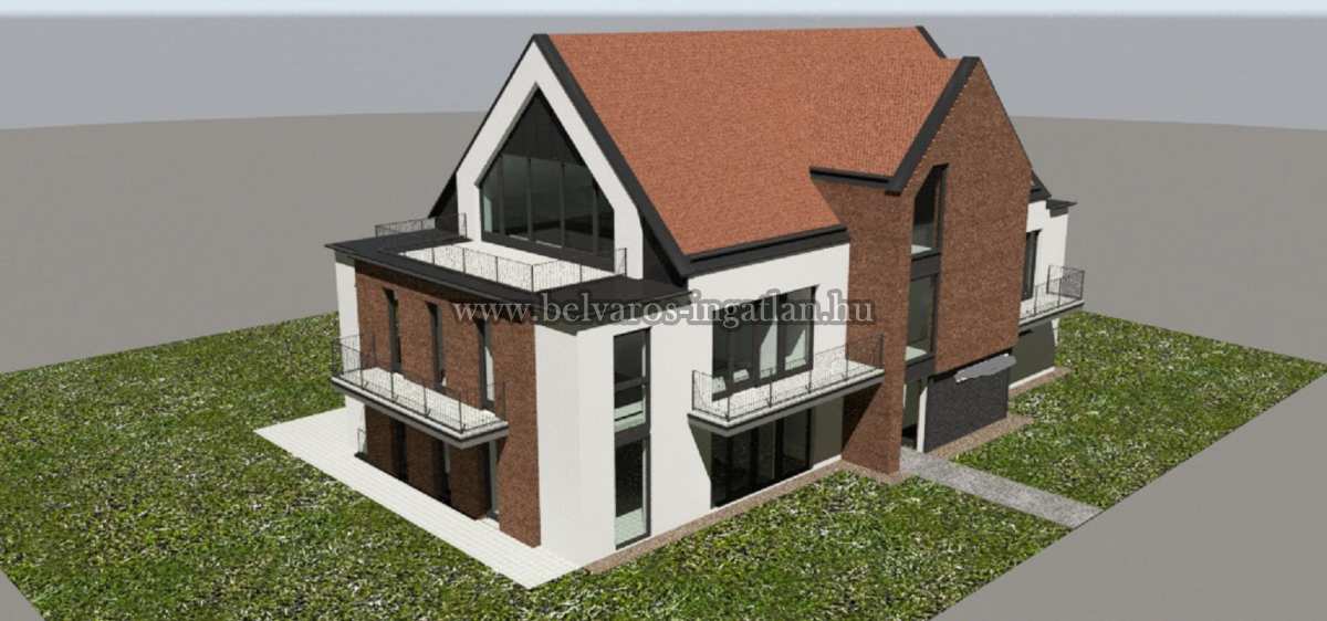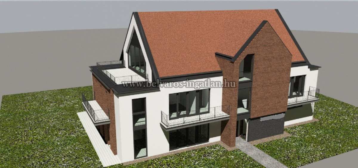 Az 1238 nm-es telken 4 lakás épül. A földszinten 89 m2 az emeleten egy 89 m2 es és egy 101 m2 es az utolsó szinten egy 105 m2 es penthouse lakás épült. A műszaki tartalom prémium szintű, három rétegű üvegezés, passzív közeli hőtechnika, levegő-víz hőszivattyú plafon hűtés-fűtés, lézer vágott hidegburkolatok, okos otthon előkészítés, parkolókban elektromos autó töltő előkészítés. Minden lakáshoz két parkolót biztosítunk, egy fedett és egy nyitott valamint tárolók.